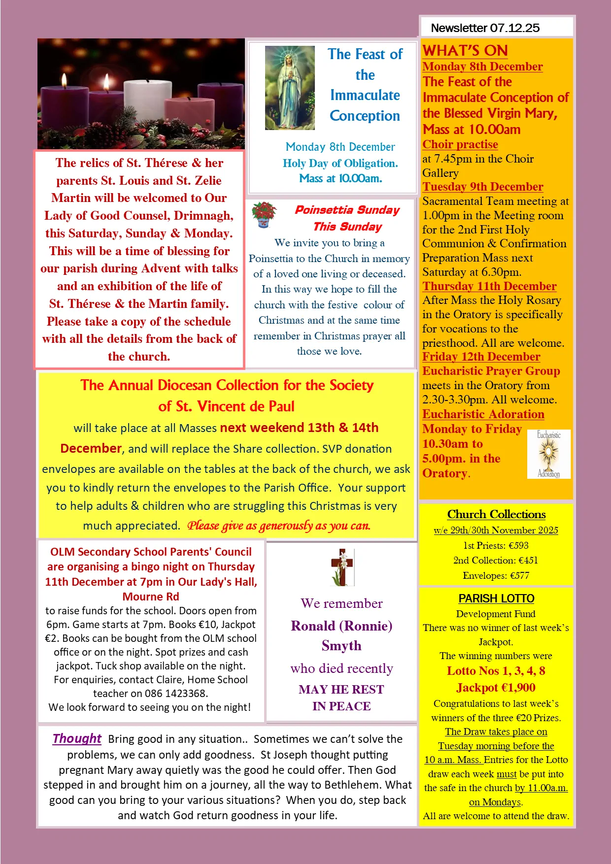 For Our Lady of Good Counsel’s postal address, please see bottom of page.